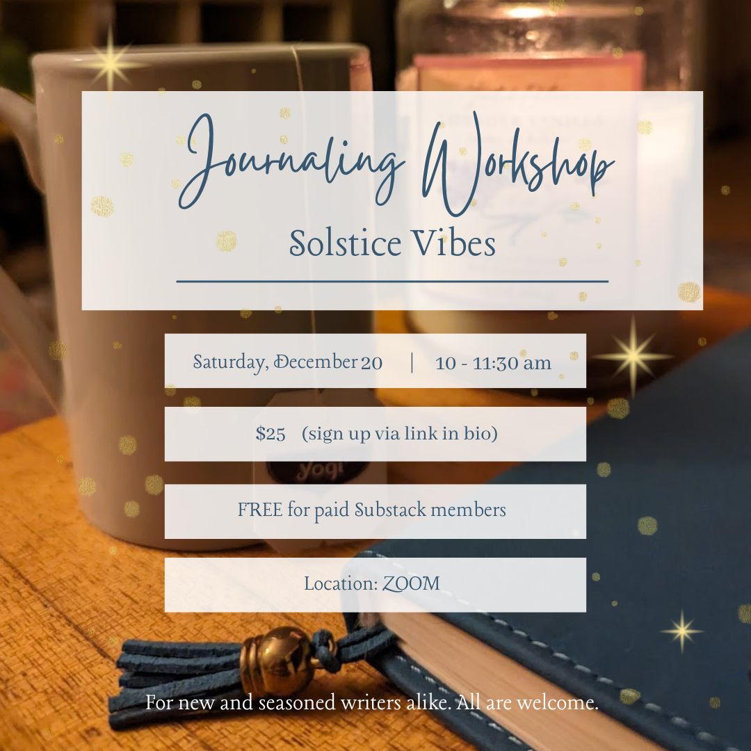 Join me for a special journaling workshop, where we will harness the magic of the winter solstice through a series of reflective journaling prompts.